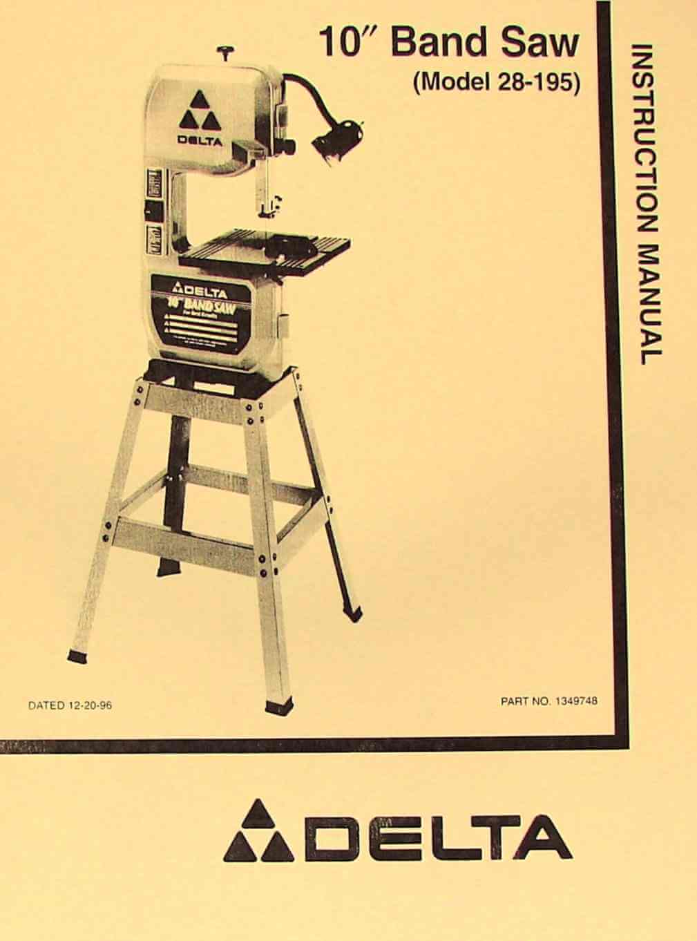 Delta Band Saw Manual - Delta 10 Band Saw Model 28 160 Instruction Manual Sointechile Cl /. Delta 14 band saw wood cutting operating & parts list manual delta on amazon.com. Anyone know where to get owners manuals for a delta 14 band saw.i went to delta's site and put in every # i . Delta 14 band saw wood cutting . Delta band saws owner's manuals can be downloaded for free. This 14 heavy duty band saw from delta machinery features a dual voltage (115/230v) tefc motor for .